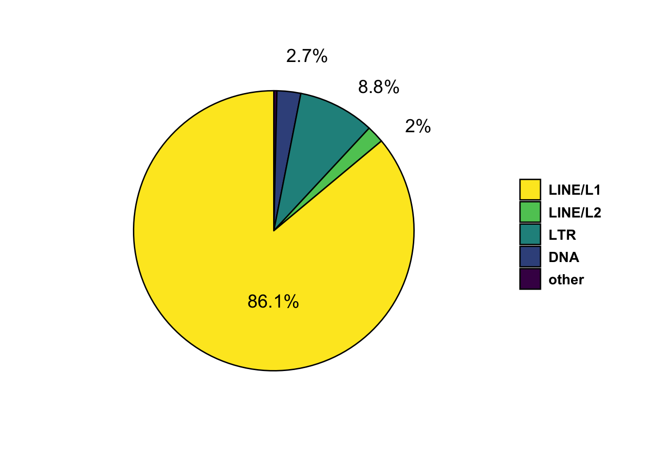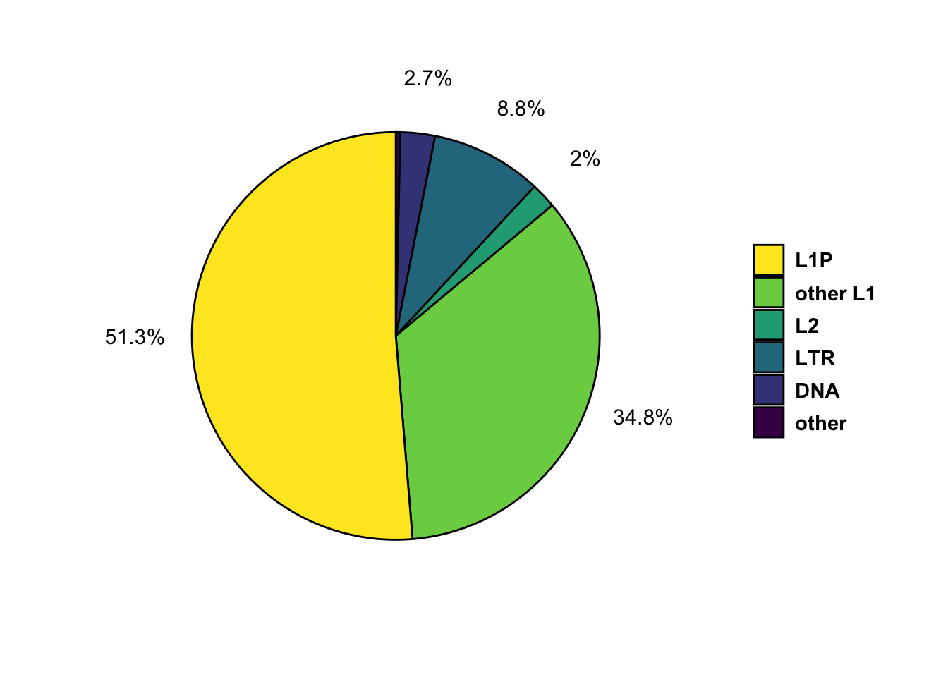 PieChart showing the proportion of classes of repeats overlapped by TKO/D3 peaks.