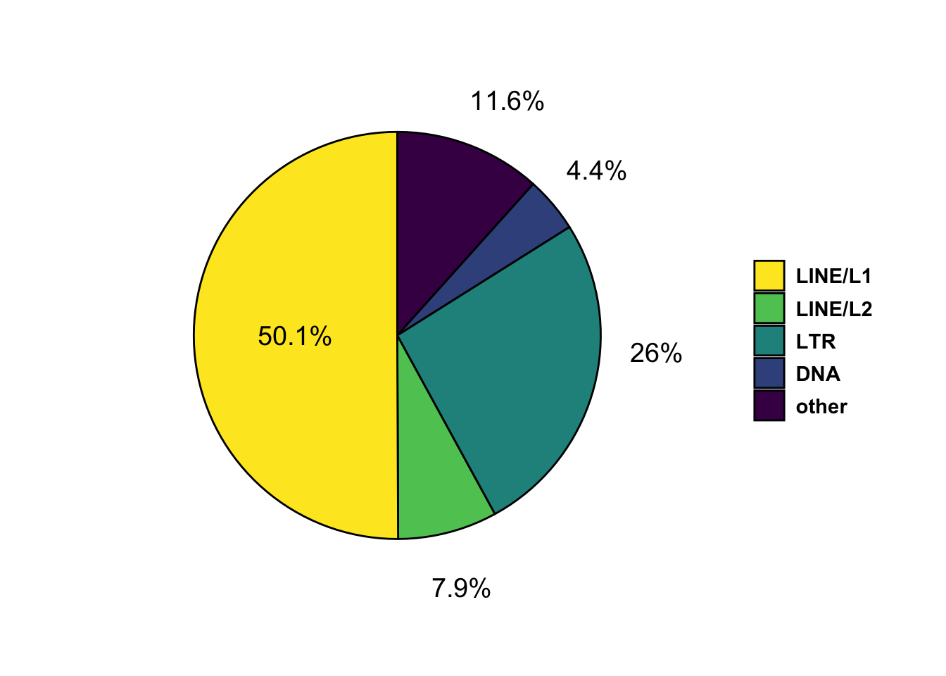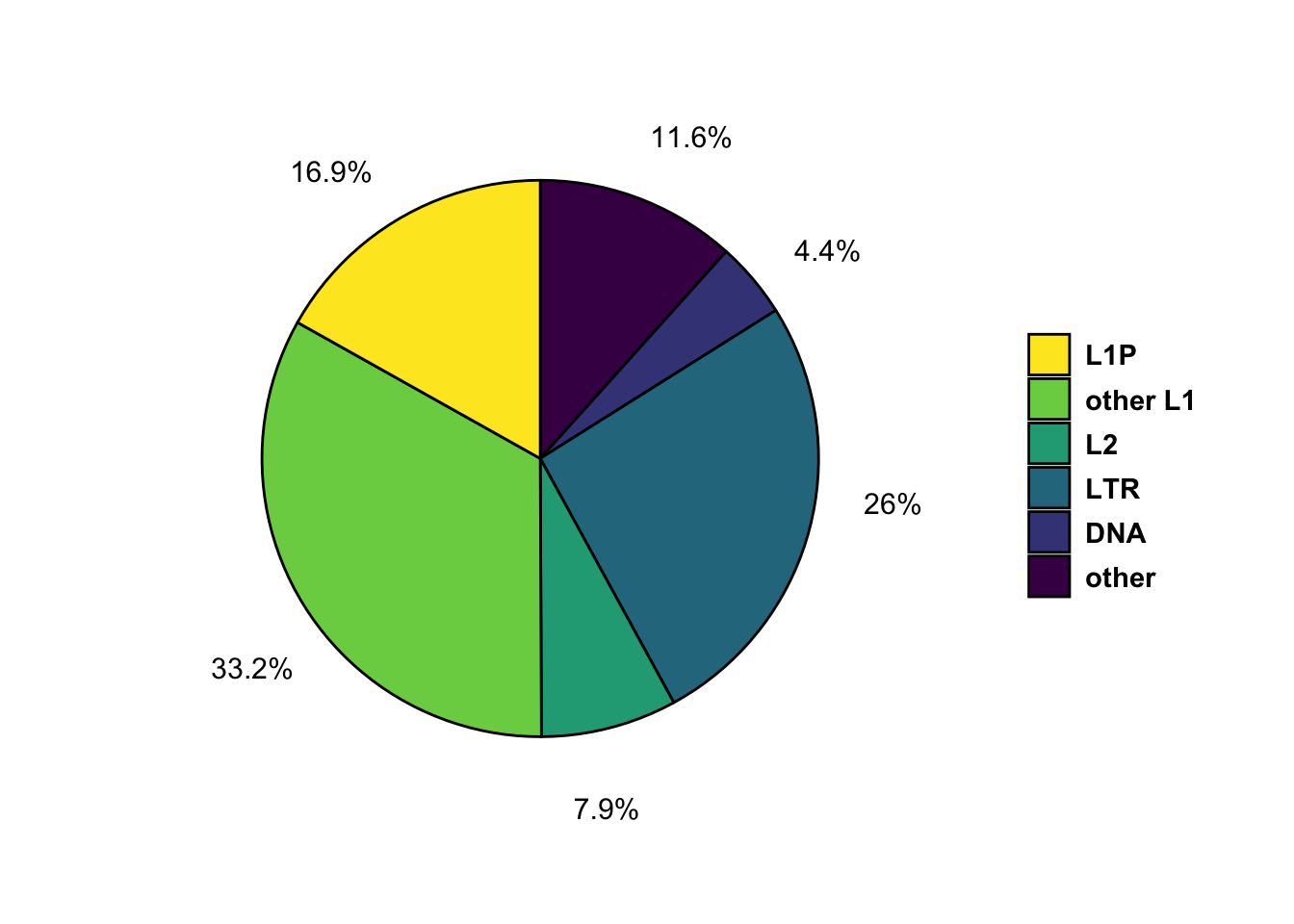PieChart showing the proportion of classes of repeats overlapped by TASOR peaks.